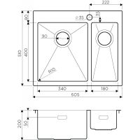 Мойка кухонная Omoikiri Akisame 60-2-IN-L прямоугольная врезная, нерж. сталь SUS304, 60 см