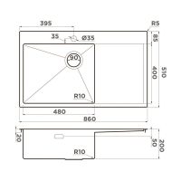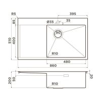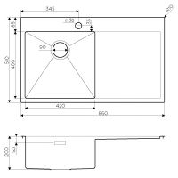 Мойка кухонная Omoikiri Akisame 86-L Side-IN, с боковым выпуском, нерж. сталь SUS304, Нержавеющая сталь