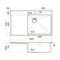 Мойка кухонная Omoikiri Akisame 86-R Side-IN, с боковым выпуском, нерж. сталь SUS304, Нержавеющая сталь