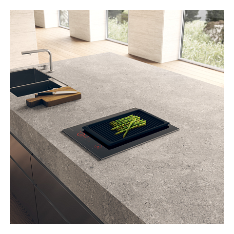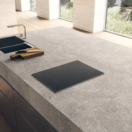 Чёрная стеклокерамическая поверхность с металлической рамкой придаёт панели элегантный внешний вид. Две конфорки общей мощностью 7,4 кВт обеспечивают эффективное приготовление блюд.