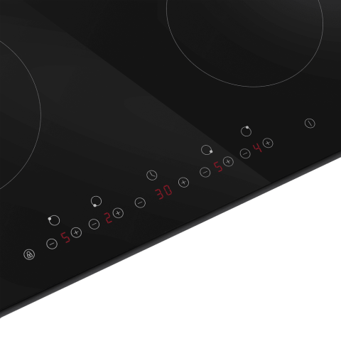 - Точный контроль с девятью уровнями нагрева: Панель предлагает девять дискретных уровней мощности для каждой конфорки. Это позволяет с высокой точностью подбирать температуру — от минимального подогрева для растапливания масла или шоколада до максимальной мощности для быстрого кипячения больших объемов воды, обеспечивая идеальные условия для любого рецепта.