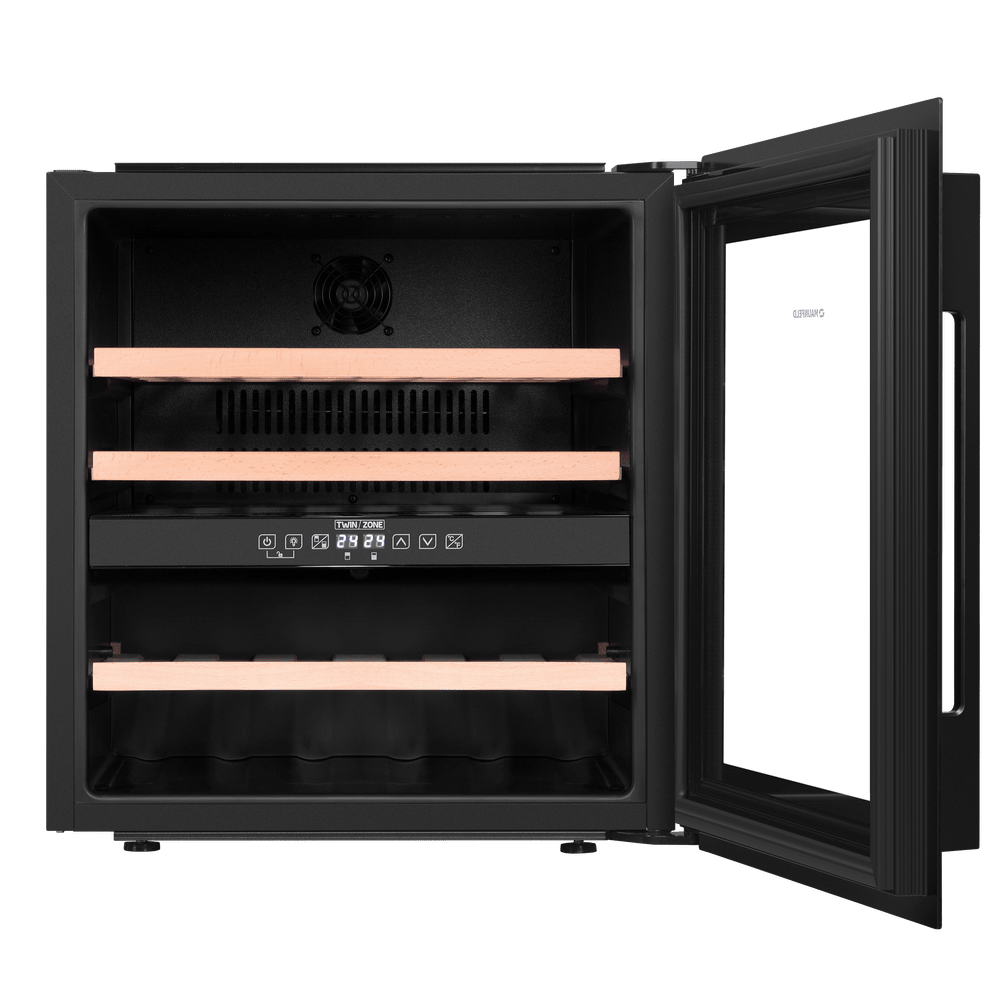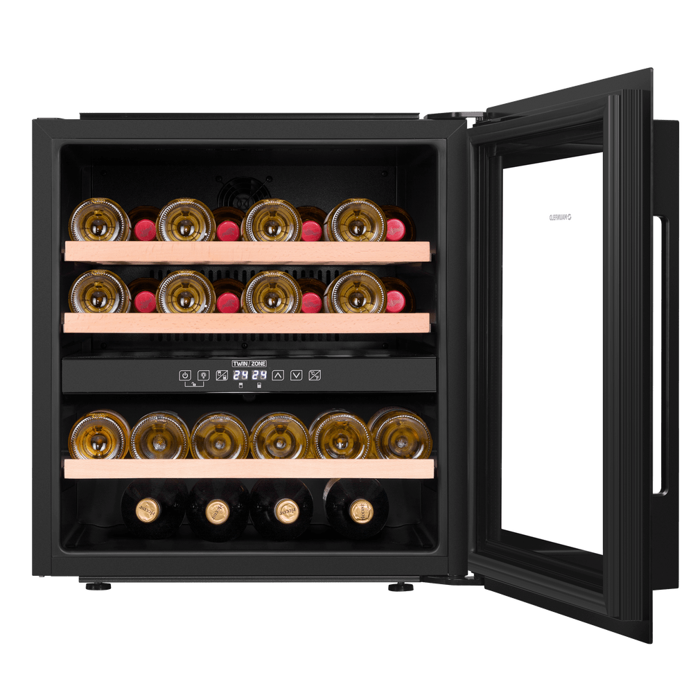 - Хранение разных сортов вин в отдельных зонах: Наличие двух независимых температурных зон (5–20°C) — ключевое преимущество для коллекционеров. Вы можете одновременно хранить красные вина при более высокой температуре и белые или игристые вина при более низкой, создавая для каждого типа напитков индивидуальные идеальные условия в одном устройстве.