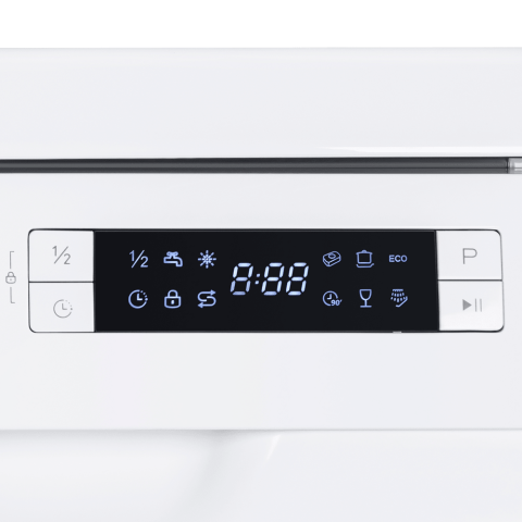 - Индикаторы: Контроль наличия соли и ополаскивателя, предупреждение об отсутствии подачи воды.