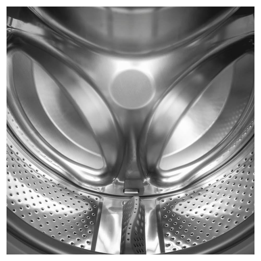 Барабан из нержавеющей стали обеспечивает бережное отношение к тканям, долговечность и устойчивость к коррозии.