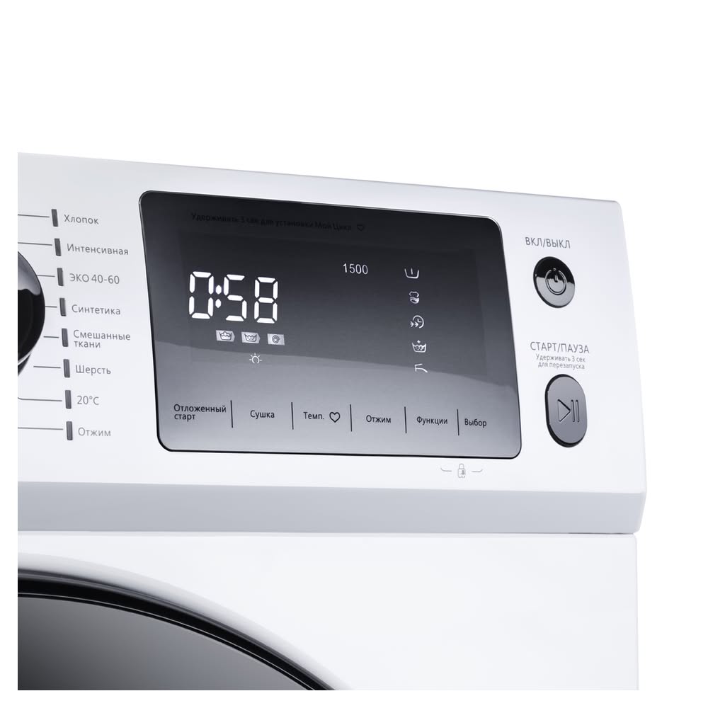 - Защита от детей: Функция блокировки панели управления предотвращает случайное вмешательство детей, изменение настроек или прерывание цикла.
