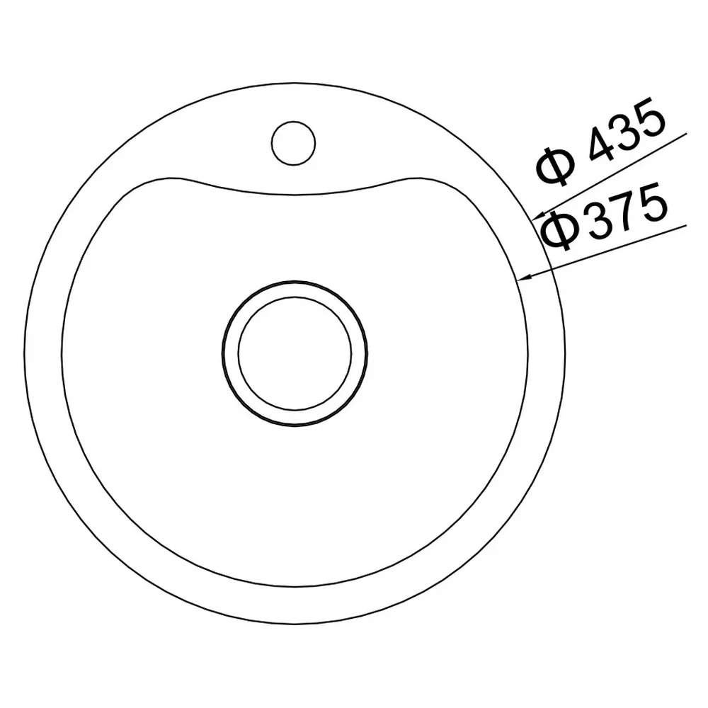 - Габариты и размеры чаши: Диаметр всей мойки составляет 435 мм, а размер чаши — 375 мм в диаметре и 200 мм в глубину.