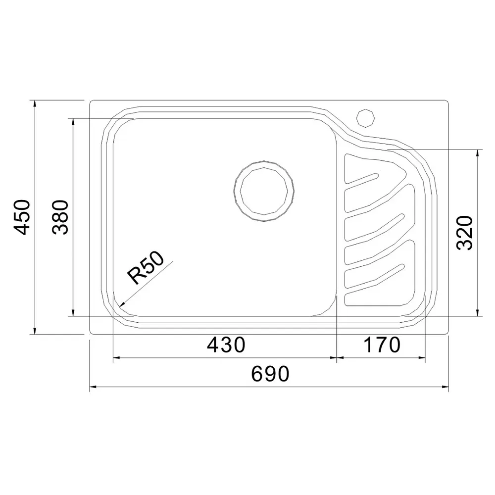 OULIN OL-327L — оригинальная кухонная мойка с удобным крылом, выполненная в левостороннем исполнении (необорачиваемая). В нее встроена Pop-Up система для практичного управления сливом.
