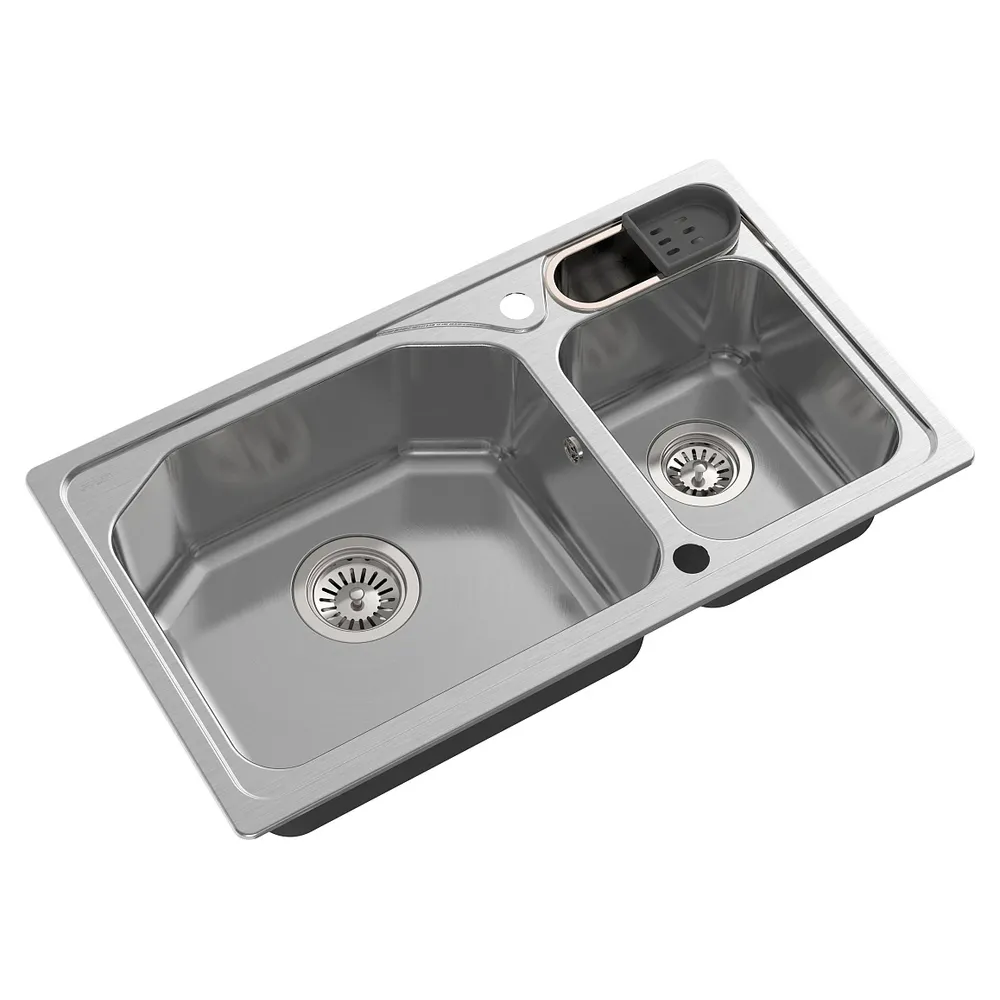 Мойка OULIN OL-H9818 — практичная модель для кухни с двумя большими чашами и удобной встроенной мыльницей. Исполнение — моноблок, с интегрированной Pop-Up системой и шумопоглощающим напылением на обратной стороне.