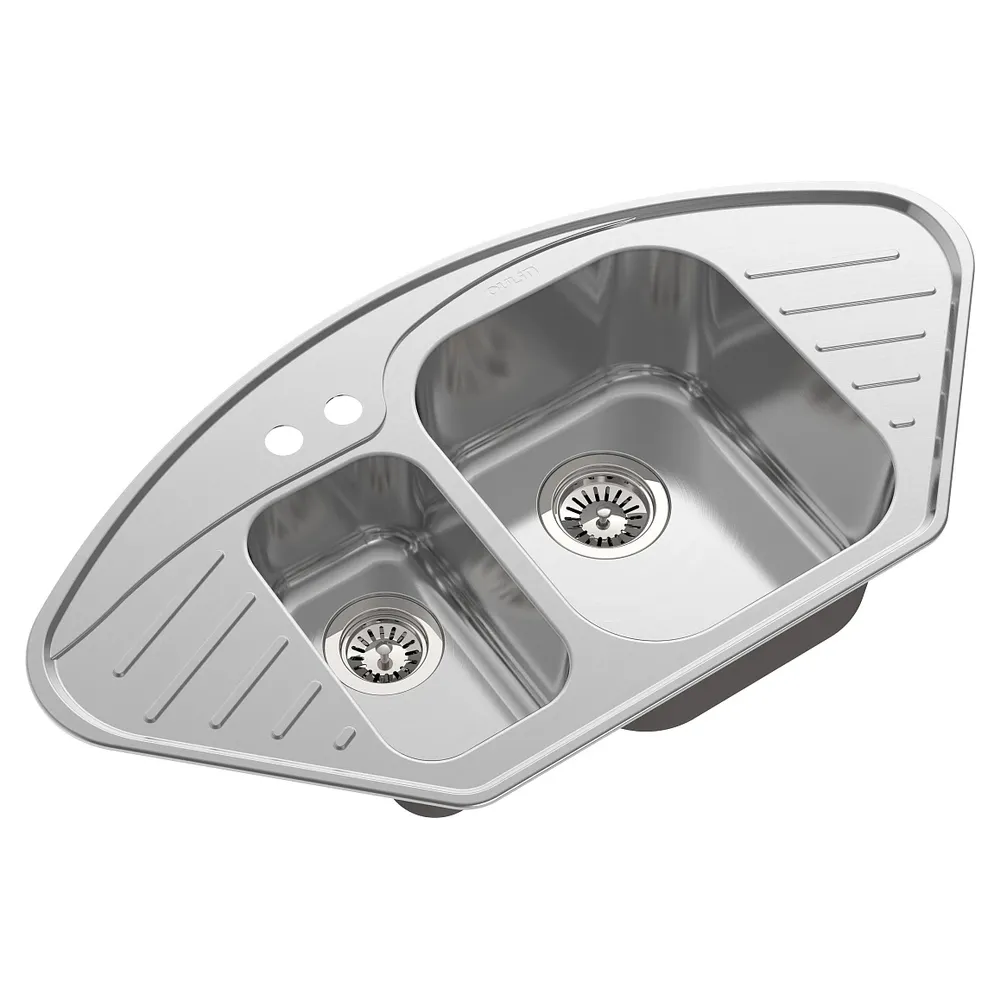 Кухонная мойка OULIN OL-310 — оригинальная угловая модель, встроенная с Pop-Up системой и шумопоглощающим напылением на обратной стороне, идеально подходит для компактных классических и современных кухонь.