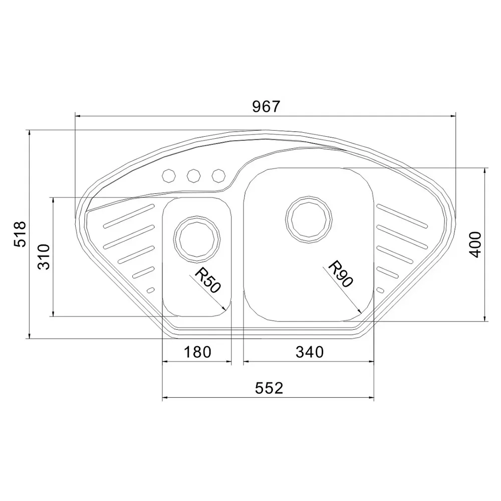 - Размеры малой чаши (Д x Ш x Г): 180 x 310 x 130 мм