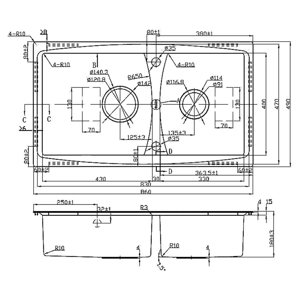 • Мойка с одной большой и одной маленькой чашей