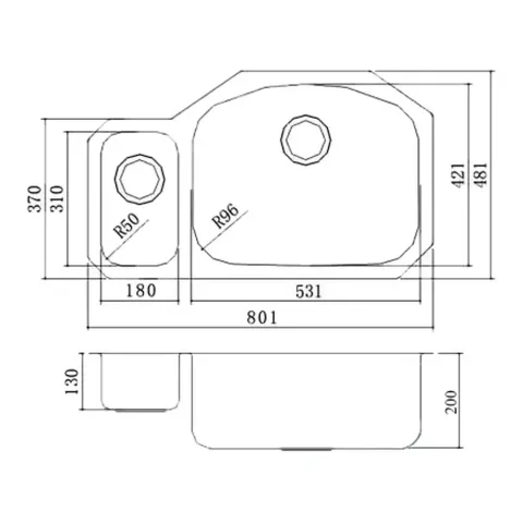 - Дополнительная чаша: 180 x 310 мм