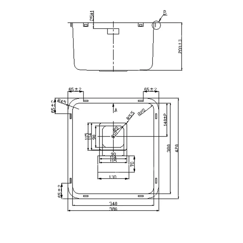 - Габаритные размеры (Д x Ш): 380 x 420 мм