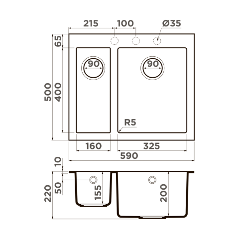 Размер чаши, мм: 160x400 / 325x400