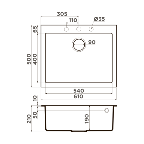 Размер чаши, мм: 540x400