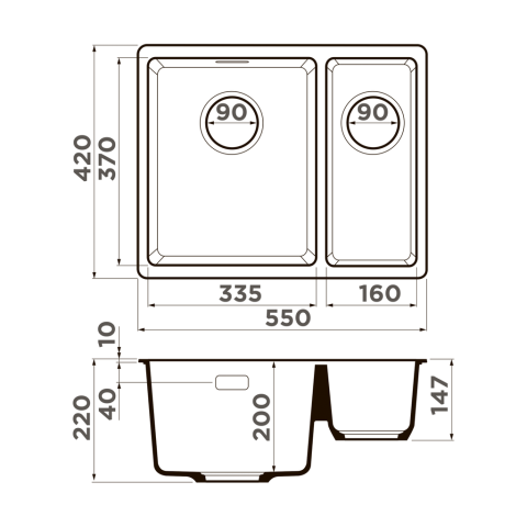Размер чаши, мм: 335x370 / 160x370