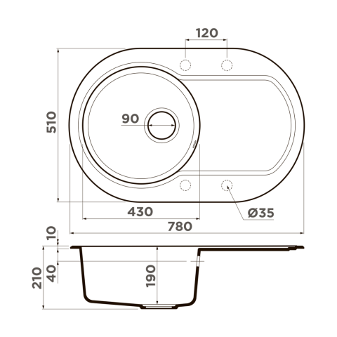 Размер чаши, мм: R430