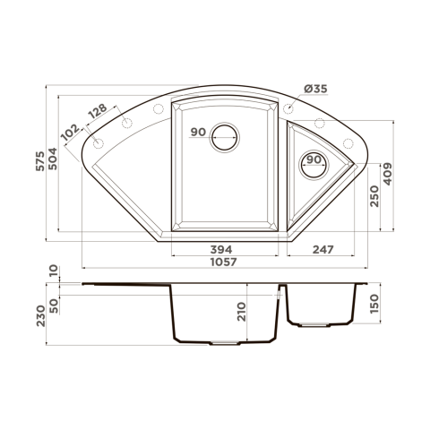 Размер чаши, мм: 394x504 / 247x409