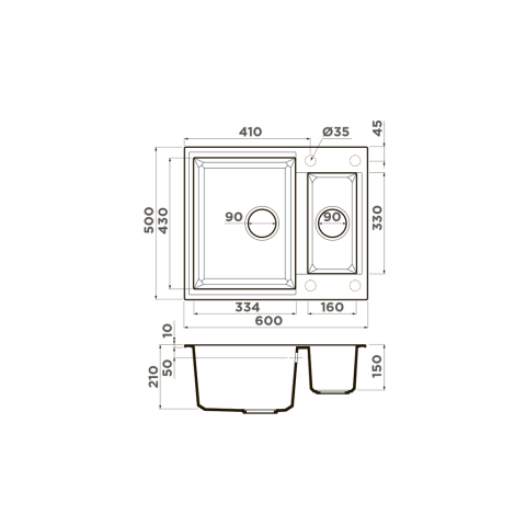 Размер чаши, мм: 334x430 / 160x330