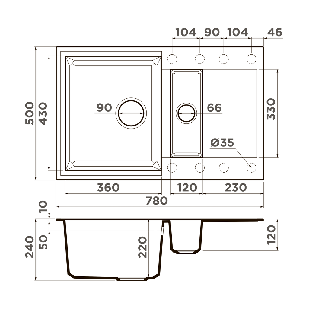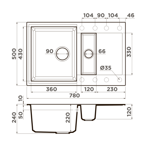 Размер чаши, мм: 360x430 / 120x330