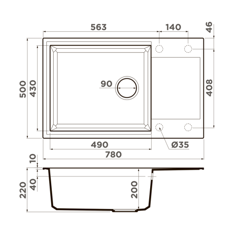 Размер чаши, мм: 490x430