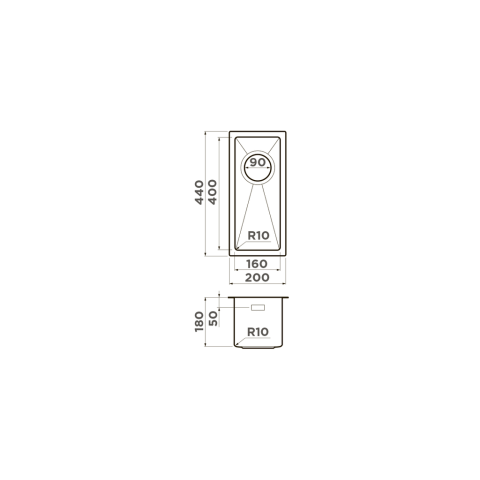 Размер чаши, мм: 160x400