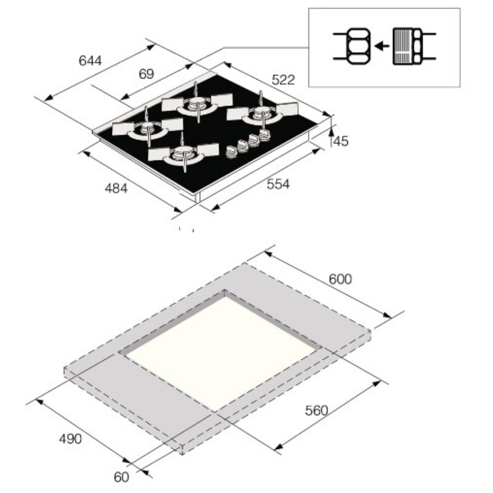 - Отключает подачу газа при случайном затухании пламени благодаря датчикам в горелках. Это повышает безопасность использования и предотвращает утечку газа.
