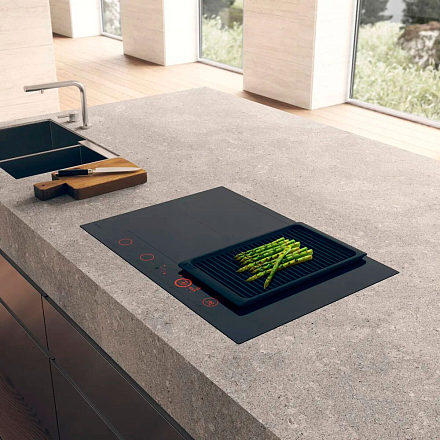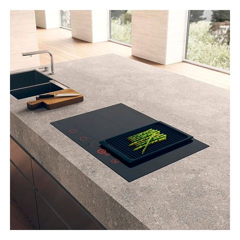 Управление осуществляется через сенсорную панель с дисплеем и возможно с мобильного устройства через Wi-Fi. Панель оснащена функцией автоматического распознавания посуды и системой Auto Bridge для объединения зон нагрева.