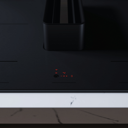 Управление осуществляется через сенсорные переключатели с информативным дисплеем. Панель оснащена функцией Booster для быстрого нагрева и технологией Bridge для объединения зон нагрева.