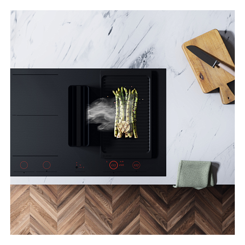 Шесть автоматических программ с температурным контролем обеспечивают оптимальные результаты приготовления. Встроенная вытяжка с выдвижным модулем предлагает пять уровней мощности для эффективного устранения запахов.