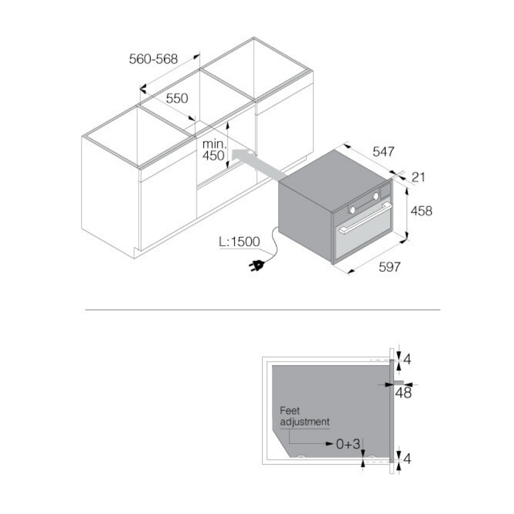 - Рекомендуемая ниша: 45×56-56.8×55 см.