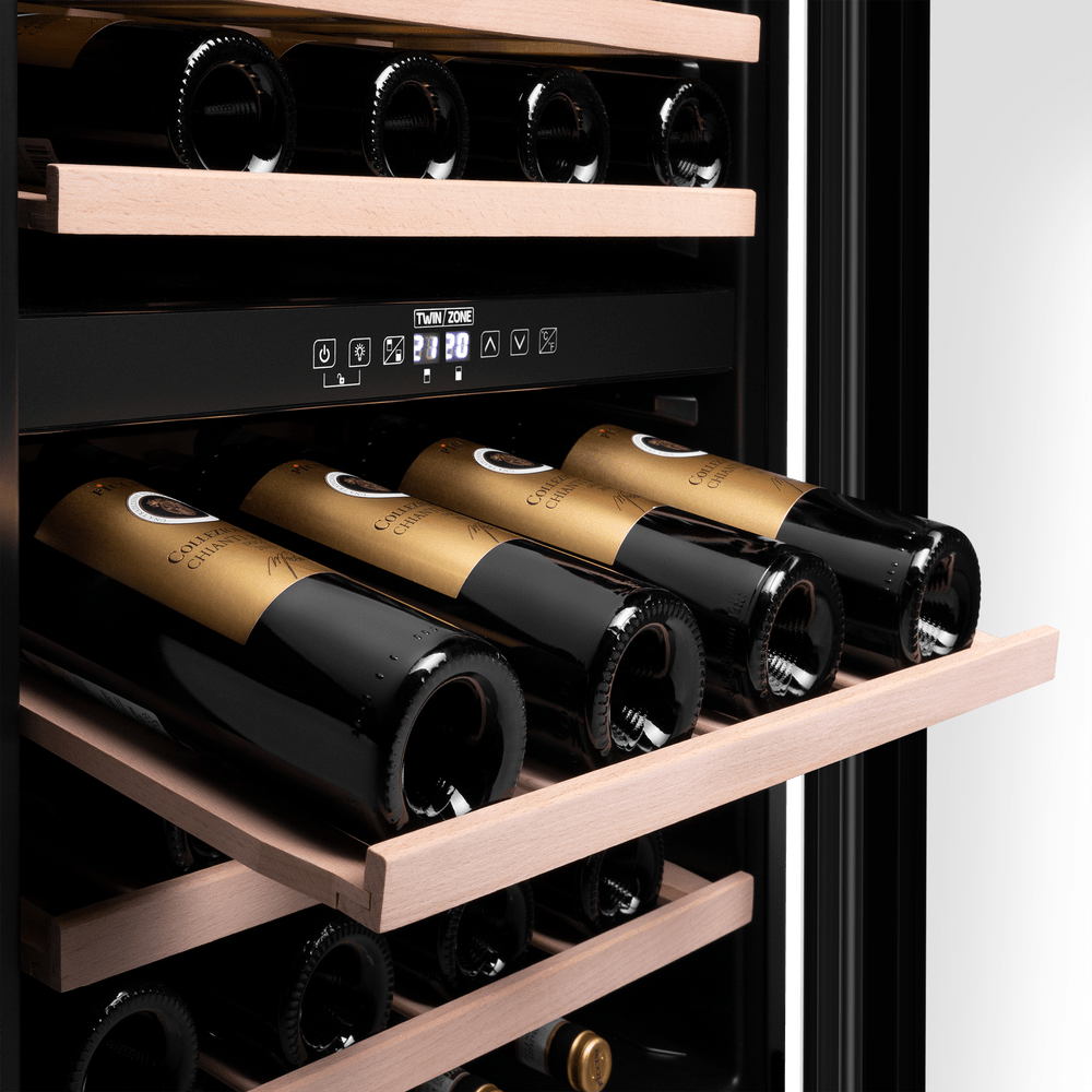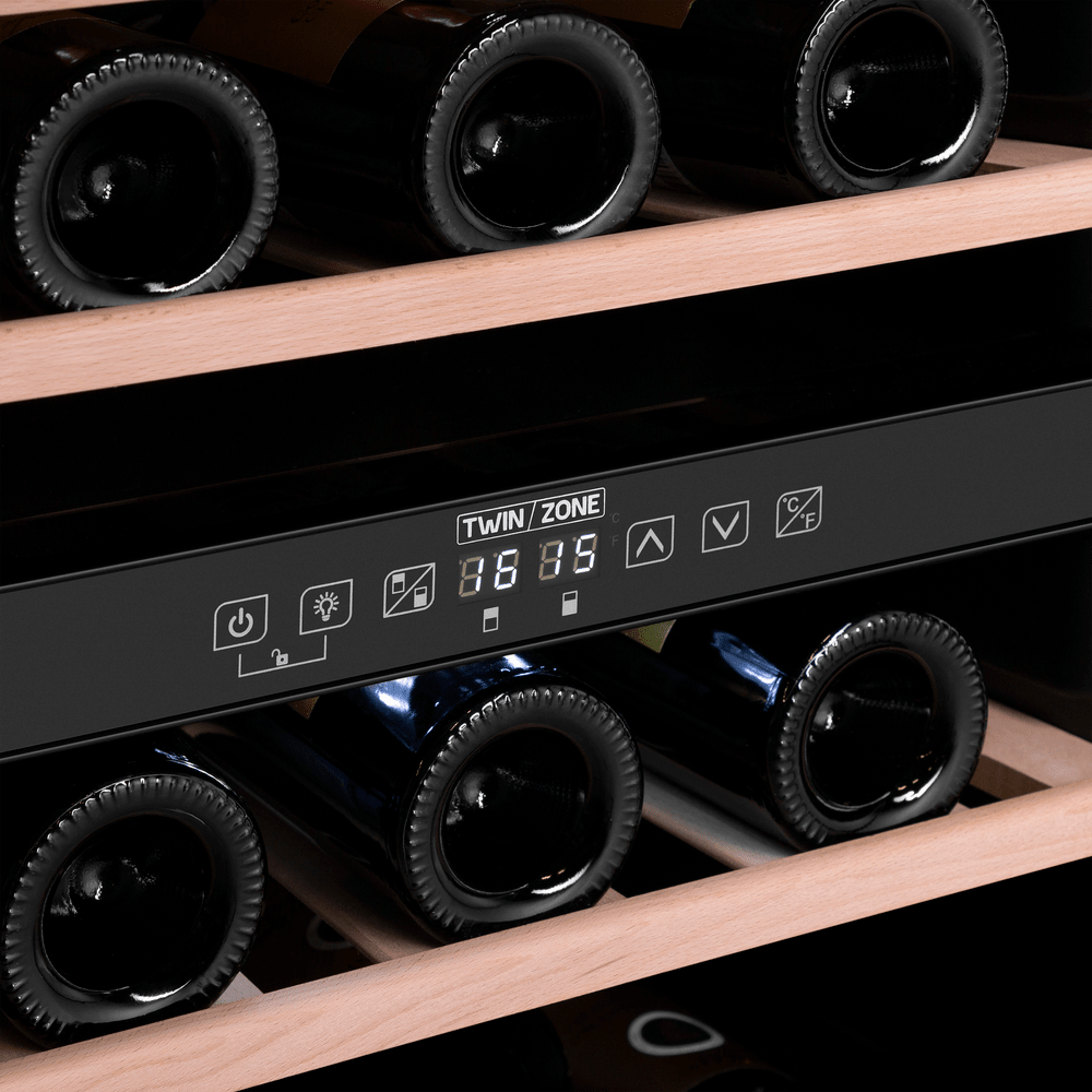 - Профессиональное хранение дома: Две зоны позволяют хранить всю коллекцию в идеальных для каждого типа вина условиях.