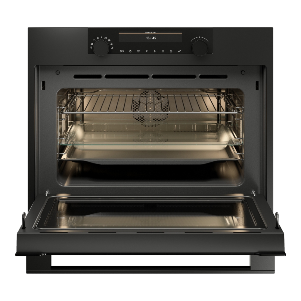 Компактный духовой шкаф ASKO OCM8487A1 отличается малыми габаритами: высота всего 45 см. Эта модель объединяет функции традиционной духовки и СВЧ-печи. Благодаря технологии Stirrer микроволны многократно отражаются от поверхности, обеспечивая равномерное приготовление пищи без необходимости в поворотном столике. Обновленный цвет ручки и переключателей позволяет легко интегрировать устройство в современные кухонные интерьеры.