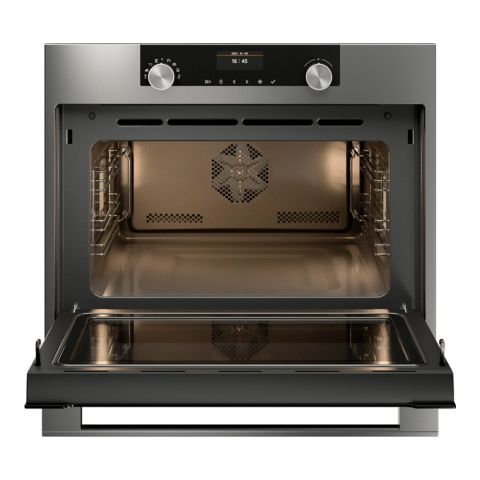 Компактный духовой шкаф Asko OCM8464S соответствует идеям современного удобства и функциональности. С высотой всего 45 см, он сочетает функции традиционной духовки и СВЧ-печи, обеспечивая комфорт и эффективность в приготовлении пищи.