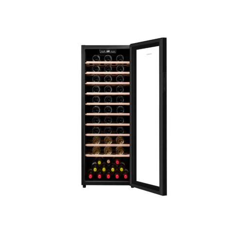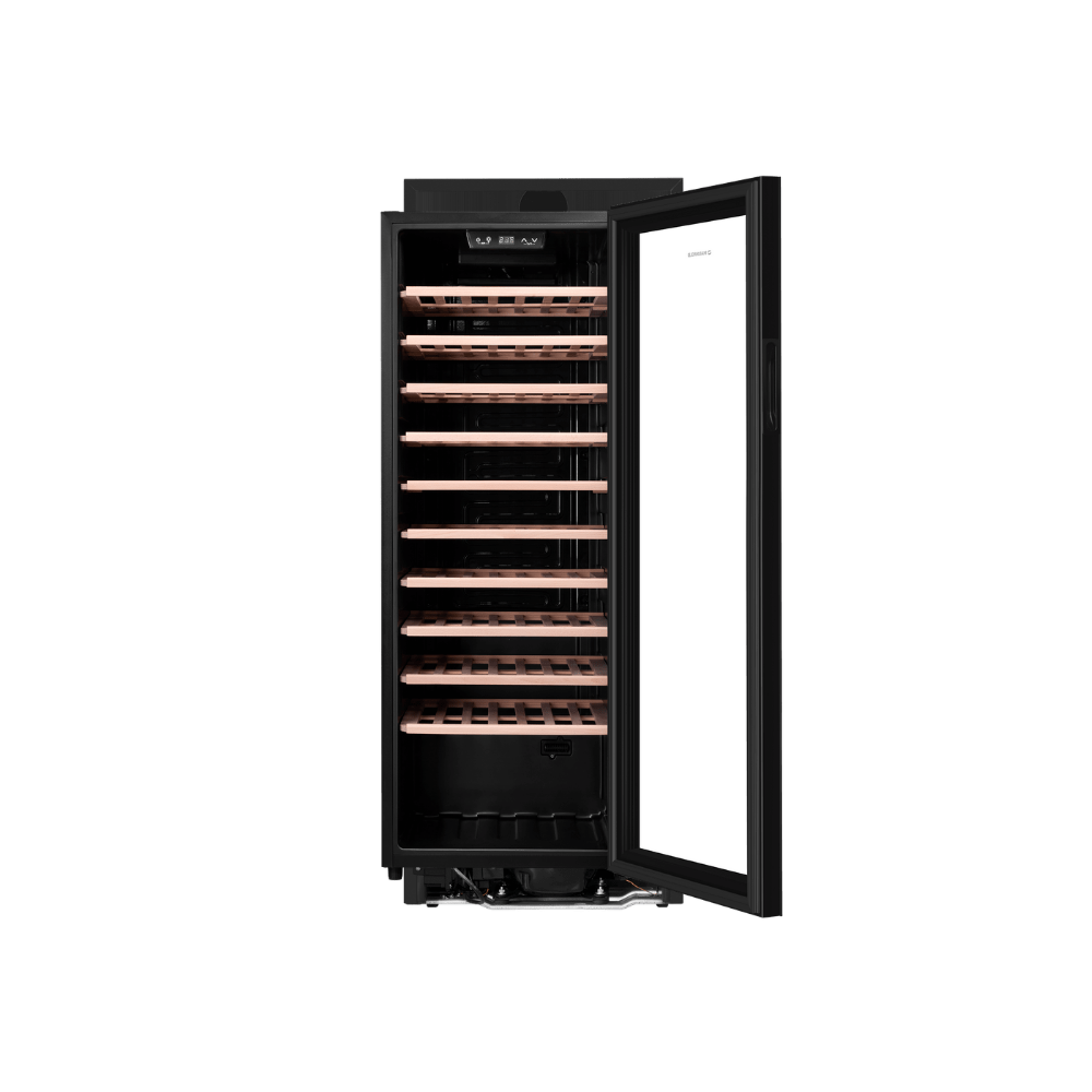 • Эффективная подсветка и система вентиляции: Энергоэффективное светодиодное освещение позволяет комфортно рассматривать коллекцию, не нарушая температурный режим. Вентилятор активно распределяет воздух, предотвращая образование "теплых" или "холодных" зон и обеспечивая идентичные условия хранения для всех бутылок.