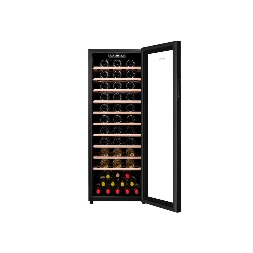 Устройство оборудовано системой климат-контроля для поддержания оптимальной температуры и влажности. Стеклянная дверца часто имеет UV-защиту для блокировки вредного для вина солнечного света. Внутренние полки спроектированы для безопасного хранения бутылок стандартного и нестандартного формата.