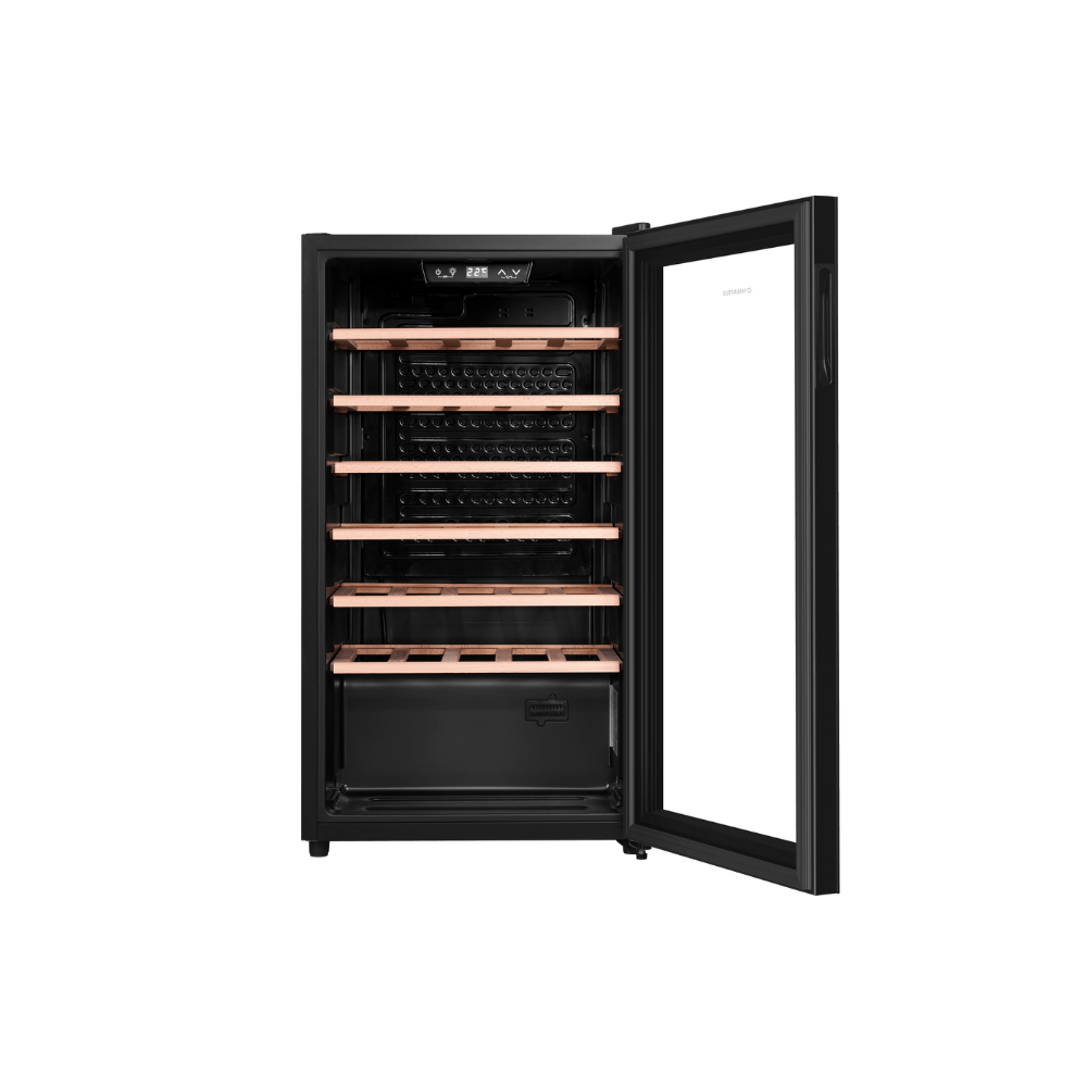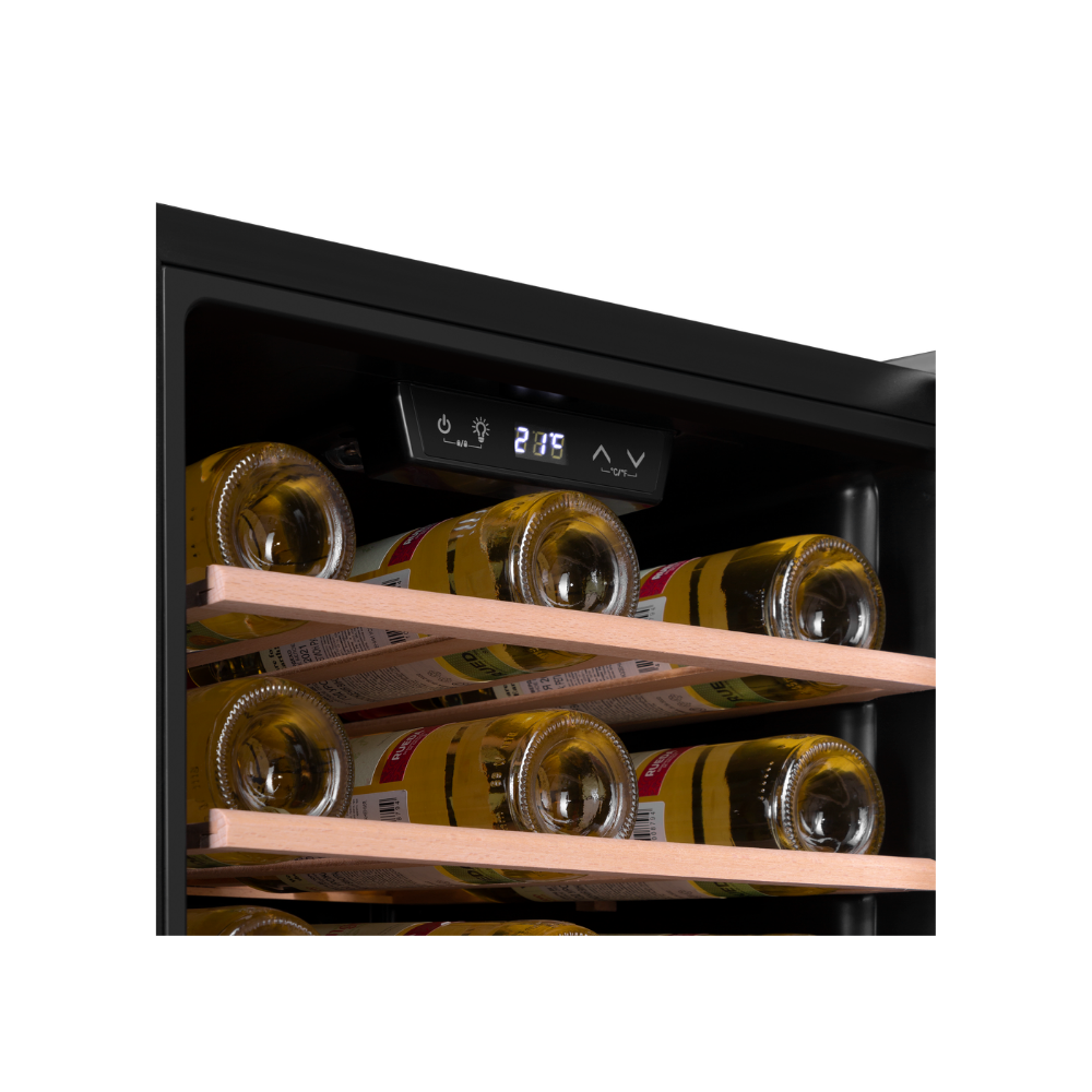 - Электронное управление для удобства использования: Сенсорная панель управления и электронный термостат обеспечивают интуитивный и точный контроль за всеми параметрами микроклимата. Это позволяет легко устанавливать и поддерживать идеальные условия для хранения вина, делая взаимодействие с шкафом максимально простым.