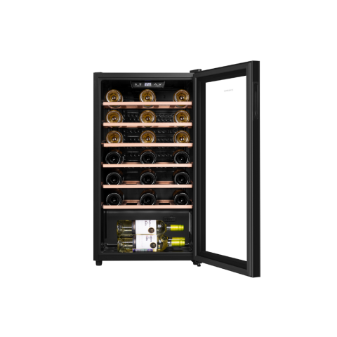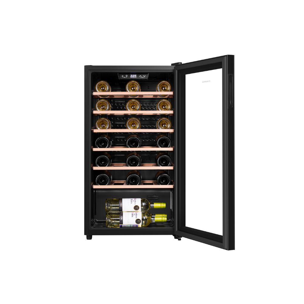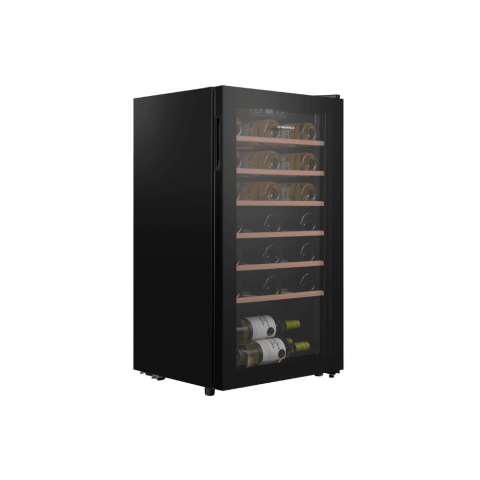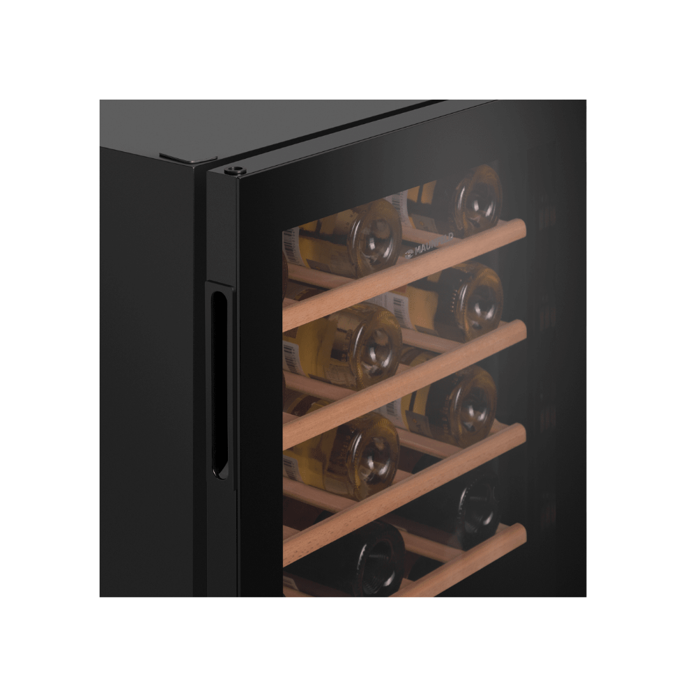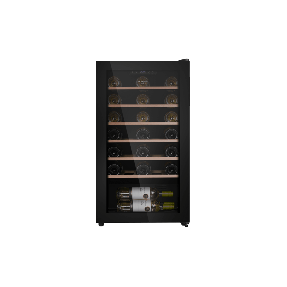Винный шкаф Maunfeld MFWC-85S34 — это вместительное и технологичное решение для хранения винной коллекции, сочетающее интеллектуальное управление с оптимальными условиями хранения. Модель в элегантном черном металлическом корпусе со стеклянной дверцей обладает значительным полезным объемом 85 литров, позволяя разместить до 34 бутылок. Управление осуществляется с помощью современных сенсорных переключателей и электронного термостата, который обеспечивает точное поддержание температуры в диапазоне от 5 до 20°C и влажности от 50 до 80%. Для безопасности коллекции предусмотрена система звукового оповещения о повышении температуры. Внутреннее пространство организовано с помощью полок из натурального бука и освещено энергоэффективными светодиодами. Стандартный компрессор, низкий уровень шума (40 дБ) и экономичное энергопотребление (139 кВтч/год) делают эксплуатацию тихой, надежной и выгодной.