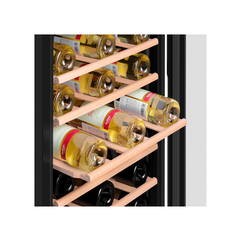 - Оптимальные условия для хранения вина: Шкаф создает и стабильно поддерживает профессиональные условия хранения: регулируемую температуру (5–20°C), влажность (50–80%) и равномерный климат благодаря одной температурной зоне и системе вентиляции. Полки из бука и светодиодная подсветка дополняют функциональность.