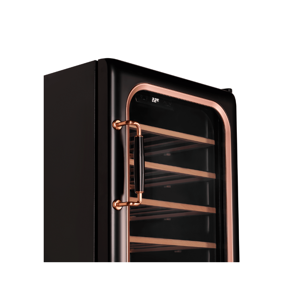 - Оптимальные условия для хранения вина: Шкаф создает и поддерживает профессиональный микроклимат с регулируемой температурой (5–20°C) и влажностью (50–80%). Светодиодное освещение и система вентиляции обеспечивают равномерные условия, а световая сигнализация предупреждает о сбоях, гарантируя сохранность коллекции.
