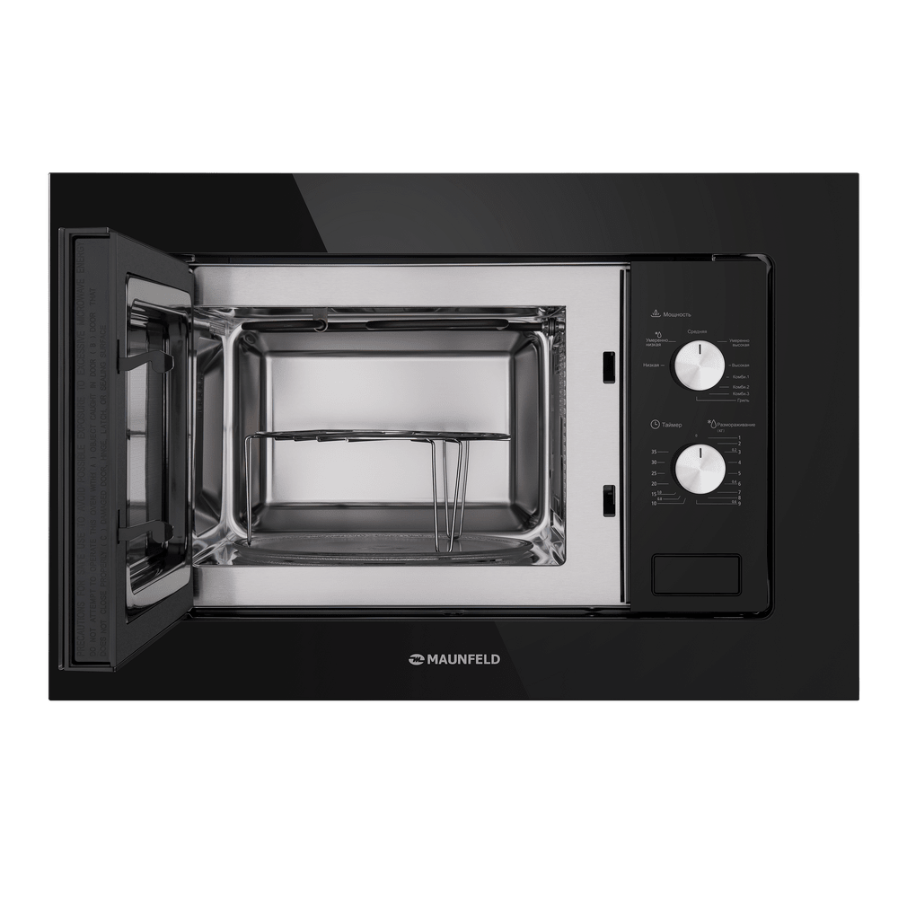 Микроволновая печь Maunfeld MBMO.20.2PGB в элегантном черном цвете сочетает в себе стильный дизайн, комфорт в использовании и современные технологии. Её внутренняя камера полностью выполнена из высококачественной нержавеющей стали AISI 304, что обеспечивает исключительную прочность, устойчивость к царапинам и абразивной чистке. Прибор оснащен практичной навесной дверцей, функциональным грилем и удобной подсветкой камеры для полного контроля над процессом приготовления.