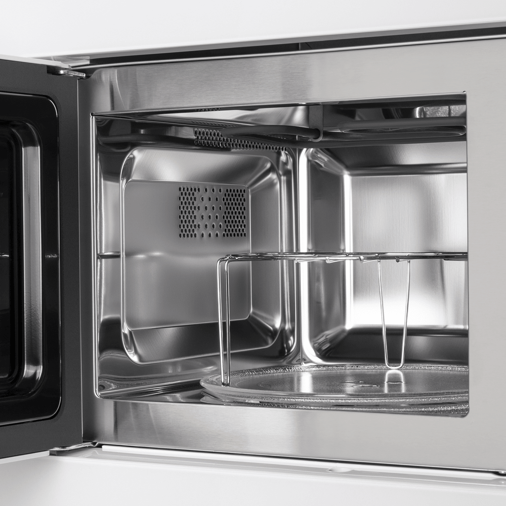 • Эргономичный дизайн и удобство: Навесная дверца обеспечивает надежное и плавное открывание. Подсветка камеры дает возможность визуально контролировать процесс приготовления без необходимости открывать дверцу и выпускать тепло.
