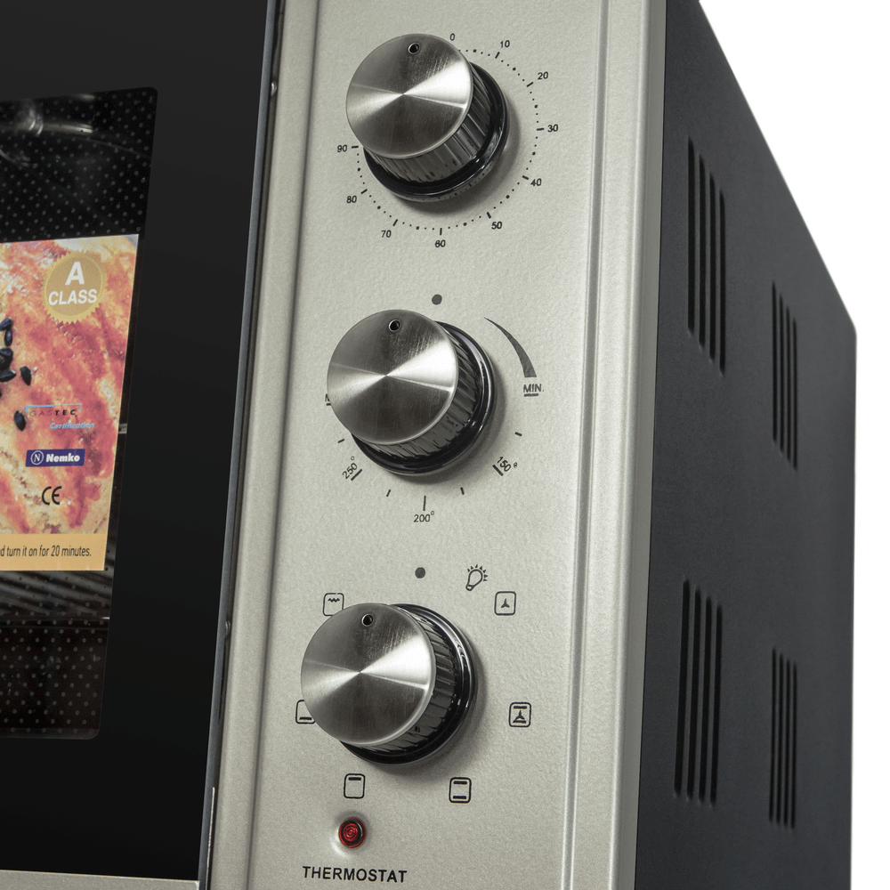 Обеспечивает равномерную циркуляцию горячего воздуха по всей камере, позволяя эффективно запекать блюда и экономить время.