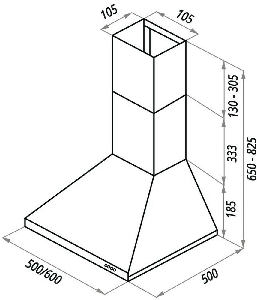 Производительность: 500 м³/ч (для кухонь до 15 м²)
