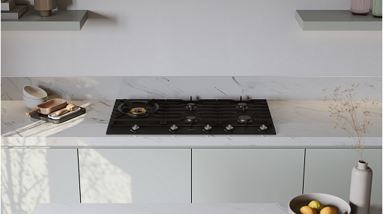 Фронтальное расположение поворотных переключателей обеспечивает комфортное управление. Система электроподжига позволяет зажечь конфорки простым поворотом ручки без использования дополнительных средств.