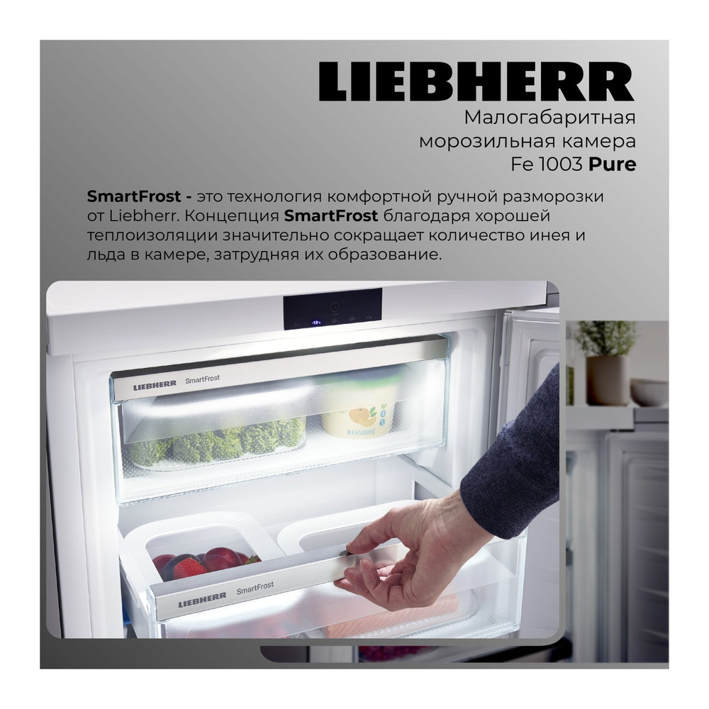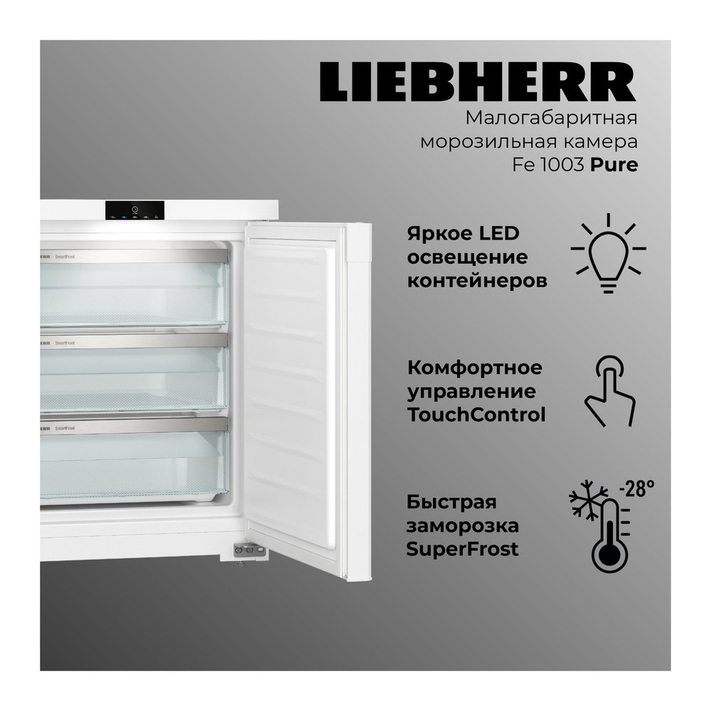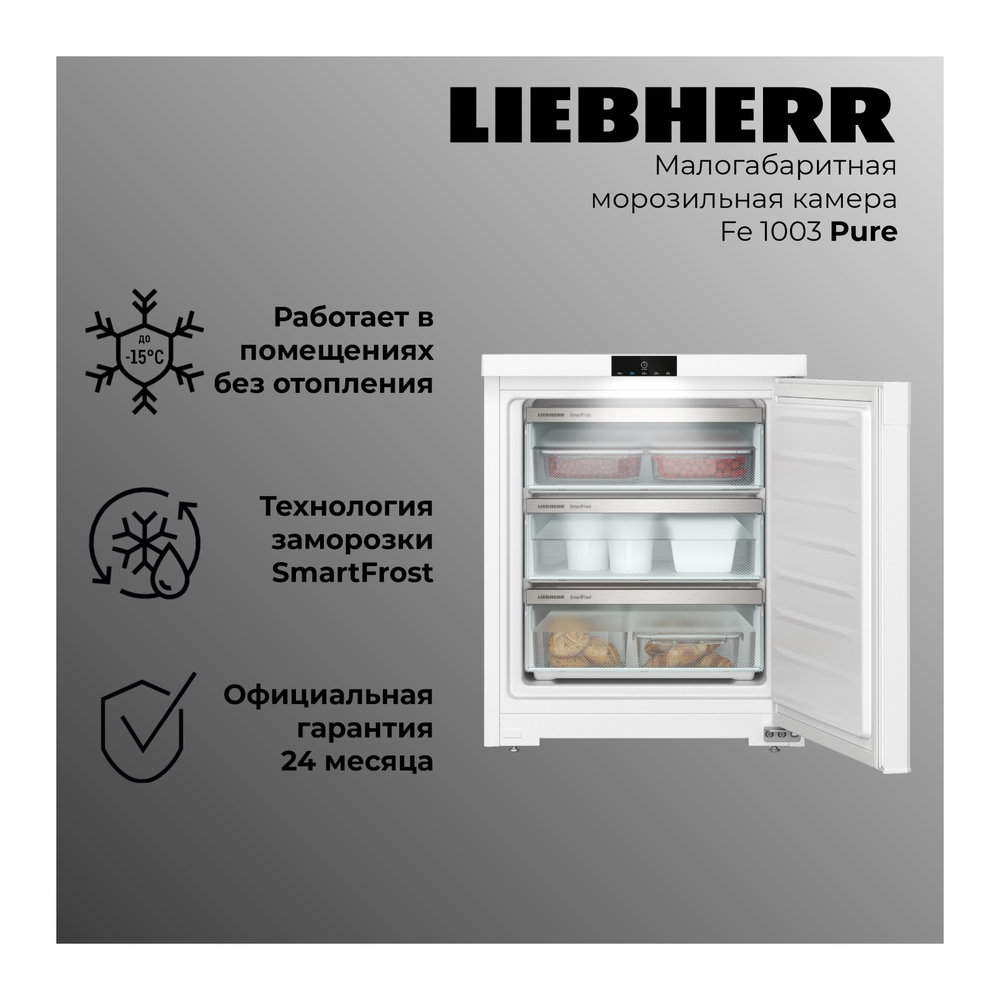 Морозильник Liebherr Fe 1003-20 001 в белом цвете — это малогабаритная морозильная камера с системой SmartFrost, обеспечивающая эффективное хранение замороженных продуктов. Этот морозильник идеально подходит для использования в домашних условиях, предлагая гибкость и удобство.