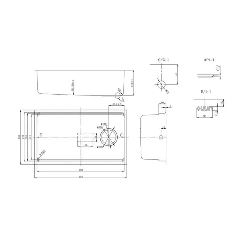 Прямоугольная мойка OULIN OL-EH201M — это практичная одночашевая модель с размерами 760 x 450 мм и глубиной 210 мм. Она выполнена в исполнении моноблок и оснащена шумопоглощающими накладками на обратной стороне.