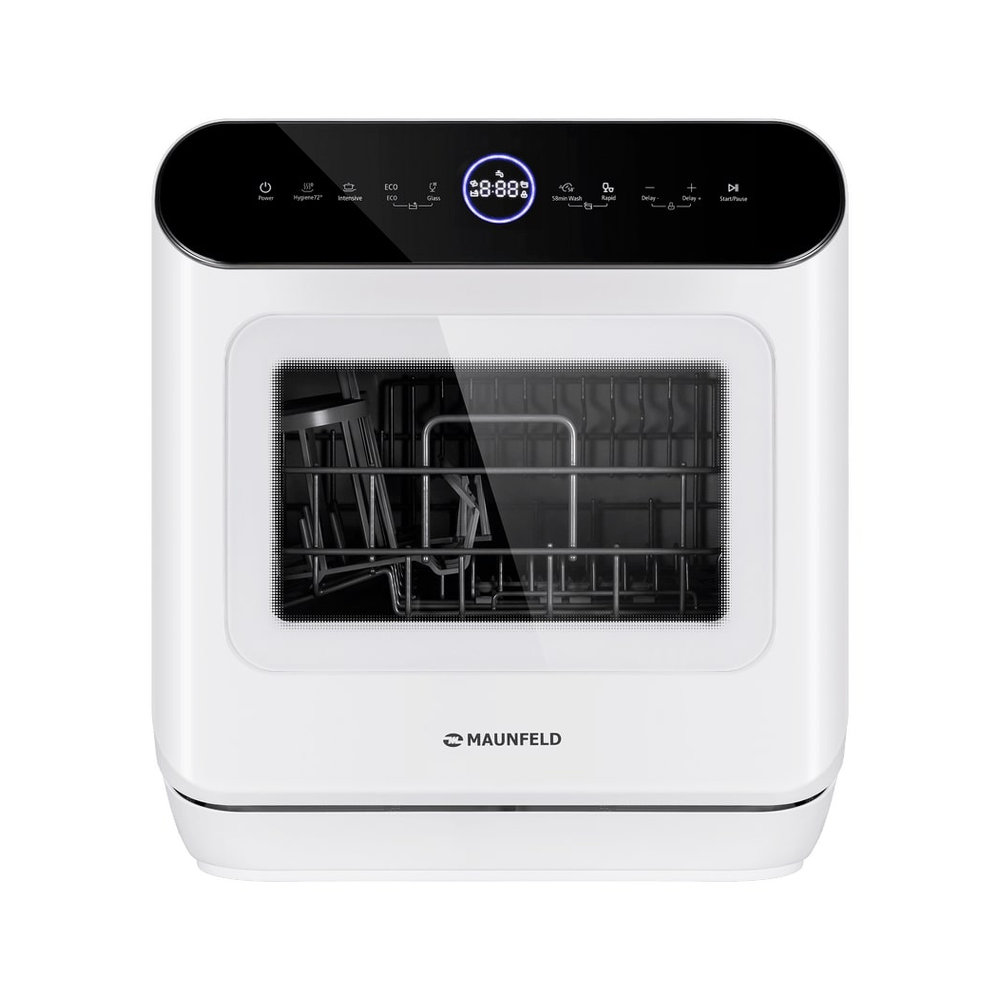 Посудомоечная машина Maunfeld MWF07IM — это компактная и экономичная модель, идеально подходящая для небольших кухонь и студий. Устройство в бело-черном цвете имеет небольшие габариты (46.5×42×43.5 см) и относится к классу энергопотребления А+. Управление осуществляется с помощью удобной сенсорной панели с цифровым дисплеем. Пользователю доступны 7 программ мойки (интенсивная, быстрая, экономичная, гигиена, 1 час, стекло) и 7 температурных режимов. Функция отложенного старта (1–24 часа) позволяет планировать работу. Экономичность модели подтверждается низким расходом воды (6 литров за цикл) и потребляемой мощностью (860 Вт). Для качественного результата предусмотрена конденсационная сушка и поддержка средств «3 в 1».