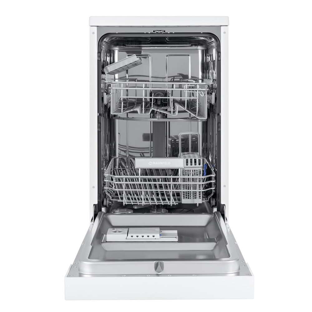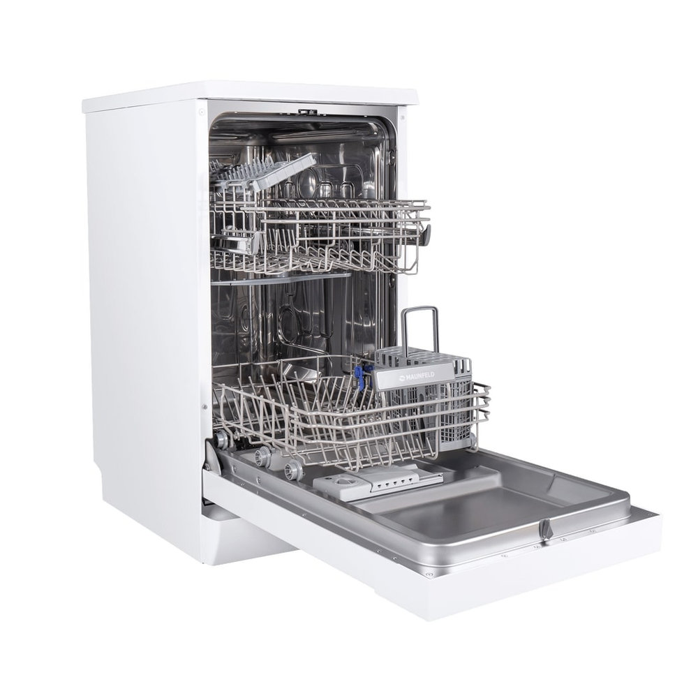 Посудомоечная машина Maunfeld MWF08S — это компактная отдельностоящая модель в классическом белом цвете, которая гармонично впишется в интерьер любой кухни. Устройство имеет ширину 44.8 см и глубину 55 см, что делает его удобным для установки даже в ограниченном пространстве. Для управления используется интуитивная кнопочная панель с информативным дисплеем. Пользователю доступны 5 программ мойки и 4 температурных режима. Ключевыми удобствами являются функция отложенного старта (1–24 часа) и режим половинной загрузки для экономии ресурсов. Машина поддерживает использование средств «3 в 1». Надежность обеспечивает система полной защиты от протечек AquaStop.