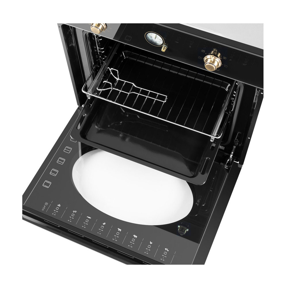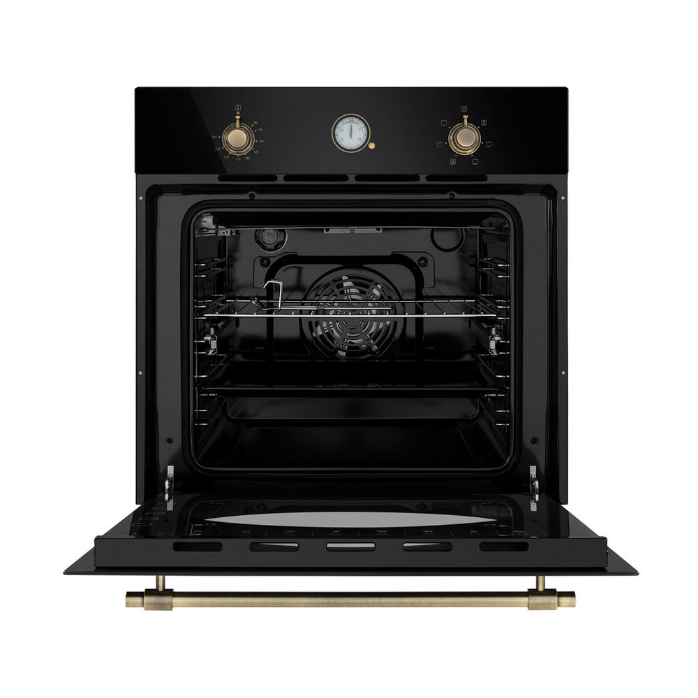 • Эксклюзивный дизайн и удобство эксплуатации: Сочетание глубокого черного цвета и золотистых элементов создает выразительный акцент в интерьере. Внутреннее освещение обеспечивает превосходную видимость, позволяя контролировать процесс приготовления, не открывая дверцу.